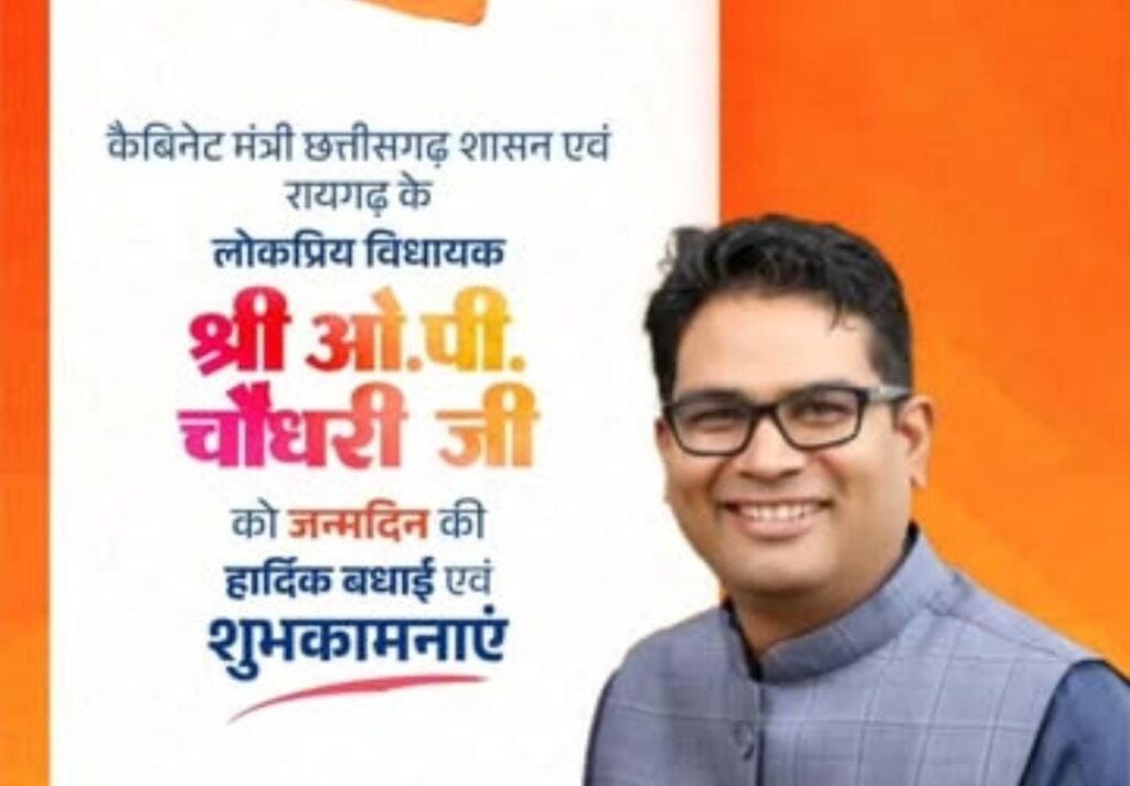 रायगढ़ / भारतीय जनता पार्टी के सक्रिय सदस्य पूर्व डिप्टी डायरेक्टर एन वाय के भारत सरकार बलबीर शर्मा ने छत्तीसगढ़ के माटी पुत्र पूर्व कलेक्टर प्रदेश के वित्त मंत्री ओपी चौधरी जी के जन्मदिन पर बधाई देते हुए कहा की छत्तीसगढ़ रायगढ़ की पावन माटी में जन्मे ओ.पी. चौधरी बेटे ने यह साबित कर दिया है कि अगर संकल्प मजबूत हो, तो कोई भी सपना असंभव नहीं होता। उन्होंने अभावों के बीच बड़े लक्ष्य बनाए और उन्हें अपने कठिन परिश्रम से प्राप्त किया।