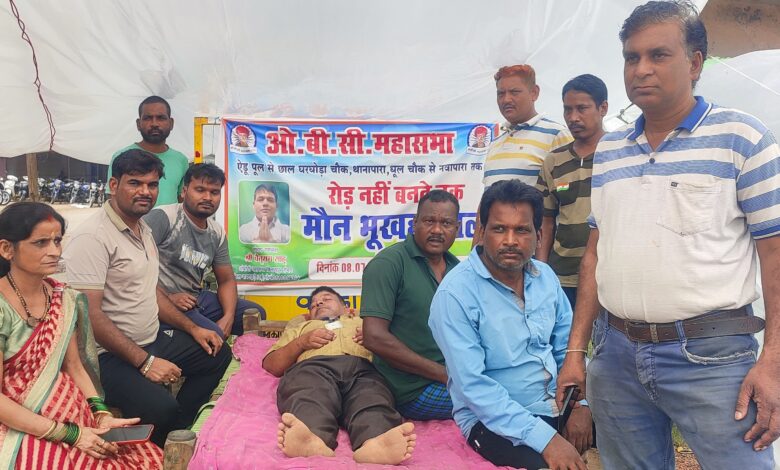 छाल (रायगढ़)। क्षेत्र में बदहाल सड़क की हालत से त्रस्त होकर स्थानीय ग्रामीणों ने अब आंदोलन का रास्ता चुन लिया है। सड़क निर्माण की मांग को लेकर छाल क्षेत्र में ग्रामीण ओबीसी महासभा के चैतूराम साहू ने मौन भूख-हड़ताल शुरू कर दी है।