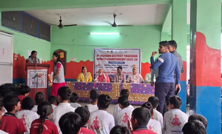जिला स्तरीय योगासन स्पर्धा रेंबो इंग्लिश मीडियम स्कूल मे हुआ सम्पन्न