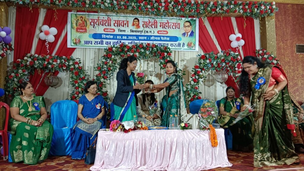 बिलासपुर में आज सावन का महीना आमतौर पर हरियाली का माना जाता है यही वजह है कि इस महीने को महिलाएं हरियाली के रूप में मानती है इस समय हरियाली के प्रति के तौर पर हरे रंग की वस्तुएं पहन कर आयोजन और उत्साह के रूप में महिलाएं इस पूरे महीने को मानती है इसी कड़ी में रविवार को सूर्यवंशी समाज के द्वारा सावन उत्सव कार्यक्रम का आयोजन महाराणा प्रताप चौक स्थित भवन में किया गया इस मौके पर बड़ी संख्या में मौजूद सूर्यवंशी समाज की महिलाओं ने इस अवसर पर विभिन्न खेल स्पर्धाओं का आयोजन किया तो वही नृत्य संगीत के माध्यम से उपस्थित समाज के सदस्यों को एक समूह में जोड़ने की कोशिश की हर साल सावन के इस महीने में सूर्यवंशी समाज के द्वारा सावन उत्सव कार्यक्रम का आयोजन किया जाता है जिसमें समाज के समस्त सदस्य शामिल होकर इस उत्साह और उमंग के रूप में मनाते हैं रविवार को यह नजारा पूरे समय देखने को मिला और समाज के सदस्य एक स्थान पर इकट्ठा हुए और समाज को नई दिशा की ओर ले जाने के लिए भी सभी को जागरूक किया ।