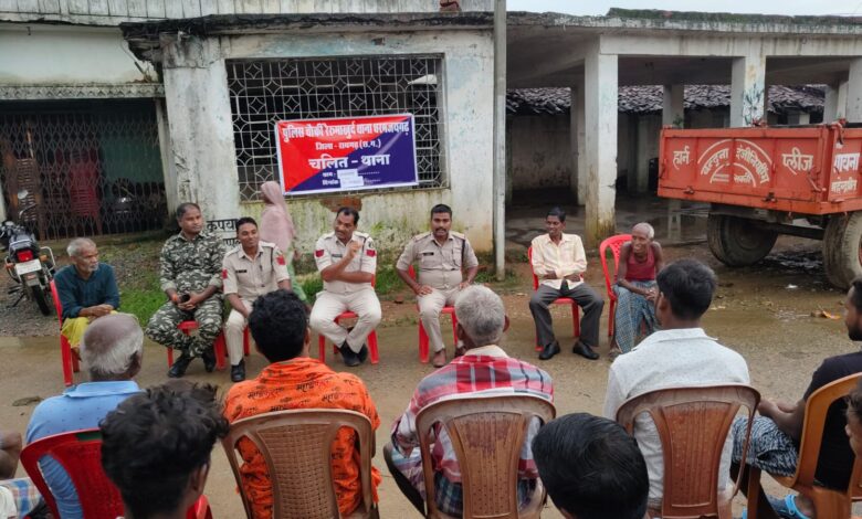 *06 अगस्त, रायगढ़* । पुलिस अधीक्षक श्री दिव्यांग कुमार पटेल के दिशा निर्देशन एवं अतिरिक्त पुलिस अधीक्षक श्री आकाश मरकाम के मार्गदर्शन पर आज पुलिस चौकी रैरूमाखुर्द द्वारा ग्राम बाकारूमा में चलित थाना लगाया गया जिसमें गांव के सरपंच, पंच, कोटवार तथा ग्रामीण मौजूद रहे । चलित थाना में चौकी प्रभारी उप निरीक्षक मनीष कांत द्वारा रहवासियों को वर्तमान में घटित होने वाले साइबर फ्रॉड, सोना-चांदी चमकाने वाले के नाम पर ठगी करने वाले, संदिग्ध फेरी वालों के द्वारा रैकी कर चोरी/लूट की कारित करने वाले अपराध के बारे में जानकारी देकर इस प्रकार के होने वाले अपराधों के रोकथाम के उपाय बताया गया । चौकी प्रभारी ने बरसात के समय जमीन पर सोने से बचने की जानकारी दी जिससे सांप बिच्छू का खतरा होता है । चौकी प्रभारी द्वारा क्षेत्र में मवेशी तस्करी की सूचना पुलिस को देने की बात कही। साथ ही गांव में अवैध शराब, जुआ, सट्टा या अन्य सामाजिक कुरीतियों के प्रति जागरूक रहने की समझाइश भी दी गई। ग्रामीणों के साथ चलित थाना में चौकी प्रभारी एसआई मनीष कांत के साथ प्रधान आरक्षक लक्ष्मी कैवर्त, चिंतामणी कुर्रे व चौकी स्टाफ मौजूद रहे ।