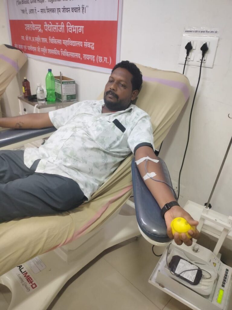 रायगढ़/ सरपंच संघ अध्यक्ष एकताल सरपंच नागरिक सुरक्षा सेवा संगठन के राष्ट्रीय युवा अध्यक्ष हिमांशु चौहान ने आज एक जरूरत मंद को रक्तदान करते हुए 36 वा रक्तदान पूरा किया जिसके लिए नागरिक सुरक्षा सेवा संगठन के संस्थापक अनगिनत रक्तदान करने वाले रेन्शी श्याम गुप्ता ने कहा कि अपने शिष्य हिमांशु चौहान के ऊपर बहुत गर्व है मेरे रक्तदान विरासत को आगे बढ़ा रहे हैं वहीं हिमांशु चौहान ने कहा कि मुझे रक्तदान के क्षेत्र में मानव कल्याण के लिए शतक पूरा करना है रक्तदान महादान है हर इंसान को बिना झिझक के रक्तदान करनी चाहिए l