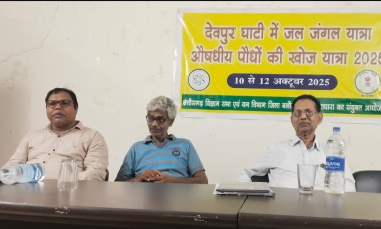 पिथौरा देवपुर के जंगलों में छत्तीसगढ़ विज्ञान सभा एवं वन विभाग जिला बलौदाबाजार-भाटापास के संयुक्त तत्वावधान में जल जंगल यात्रा औषधीय पौधों की खोज यात्रा का आयोजन वन मंडलाधिकारी धम्मशील गणवीर के मार्गदर्शन में 10 अक्टूबर से 12 अक्टूबर तक देवपुर की घाटी में की गई।