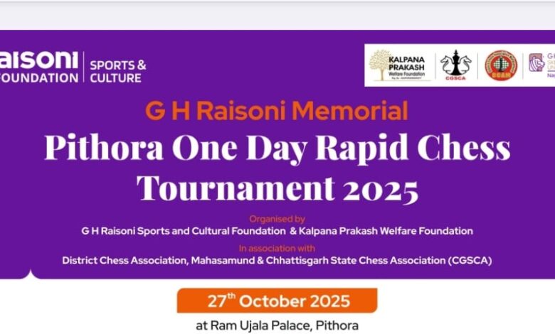 जी एच रायसोनी मेमोरियल रेपिड शतरंज स्पर्धा पिथौरा में कल से