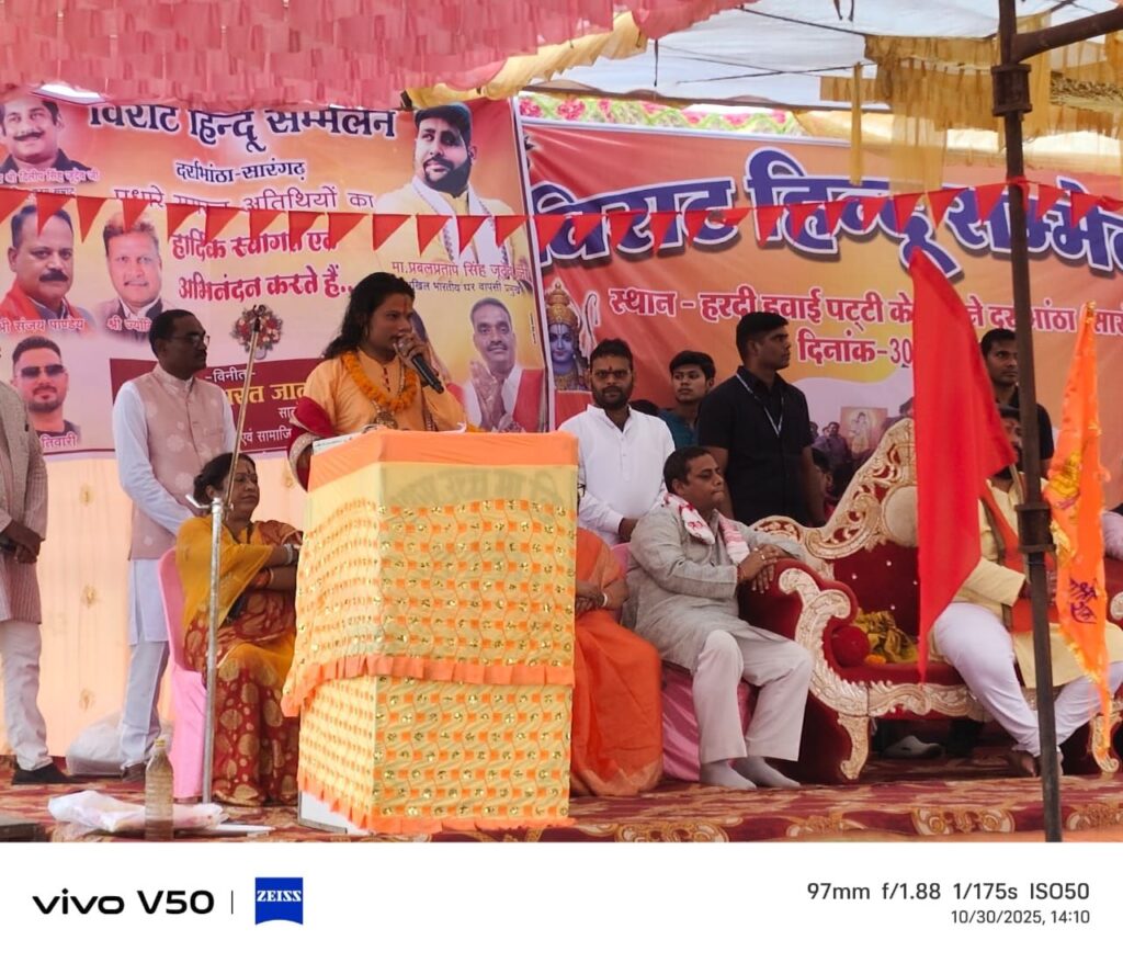 रायगढ़/सारंगढ़। ग्राम गोडम में आयोजित भव्य विराट हिंदू महासम्मेलन में उस समय वातावरण धर्ममय और ऊर्जामय हो उठा जब गुरुदेव अजय उपाध्याय महाराज और हिंदू हृदय सम्राट प्रबल प्रताप सिंह जूदेव ने मंच से धर्मरक्षा का प्रखर संदेश दिया।