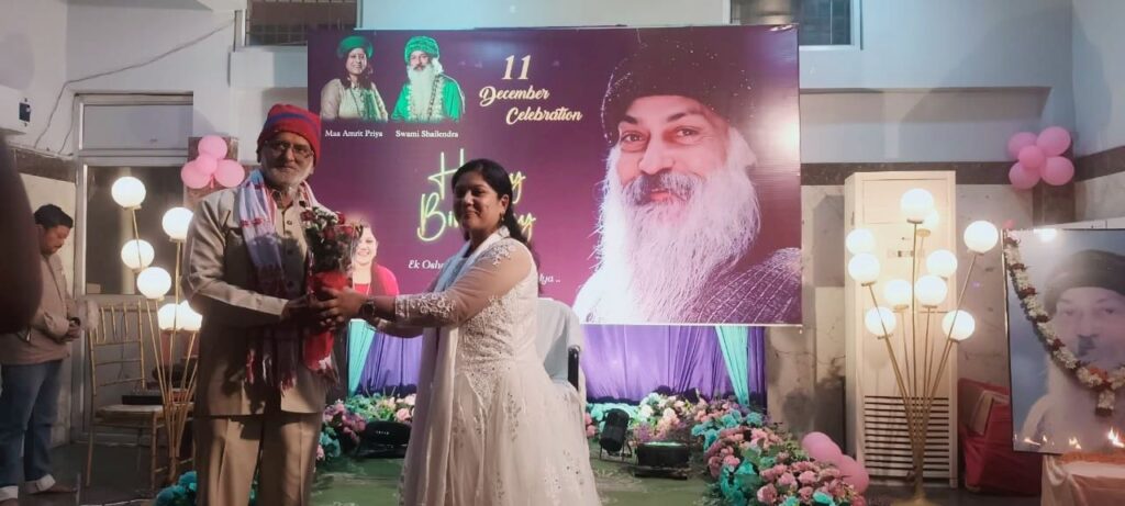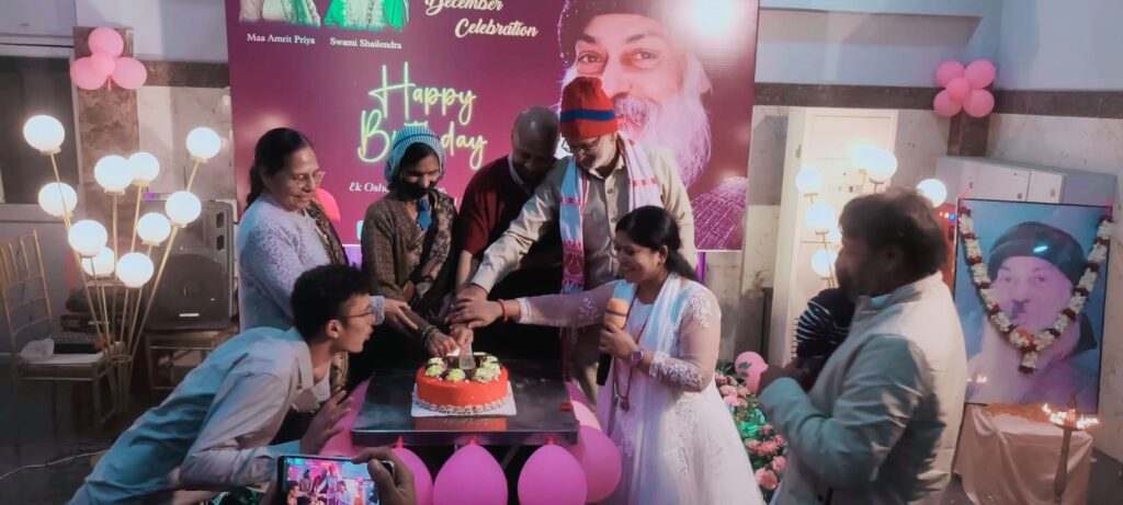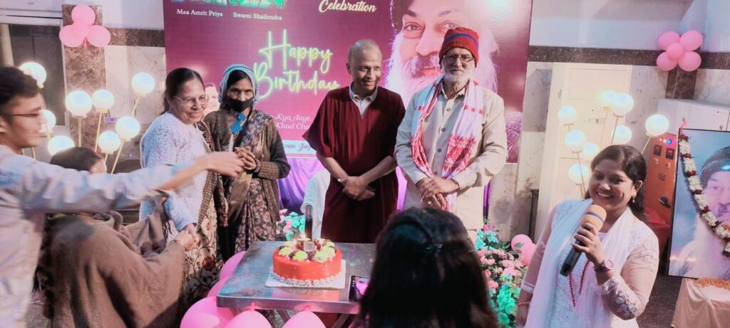 आध्यात्मिक वातावरण में आयोजित इस कार्यक्रम के बाद सामूहिक रूप से आचार्य रजनीश ओशो के नाम पर केक काटकर उनका जन्मदिवस हर्षोल्लास के साथ मनाया गया। कार्यक्रम में शामिल साधकों ने ओशो के प्रेम, शांति और ध्यान मार्ग को जीवन में अपनाने का संकल्प भी लिया। समारोह के दौरान ओशो परिवार के सदस्यों ने एक-दूसरे को शुभकामनाएं दीं और उनके संदेशों को समाज तक पहुँचाने की बात कही।
