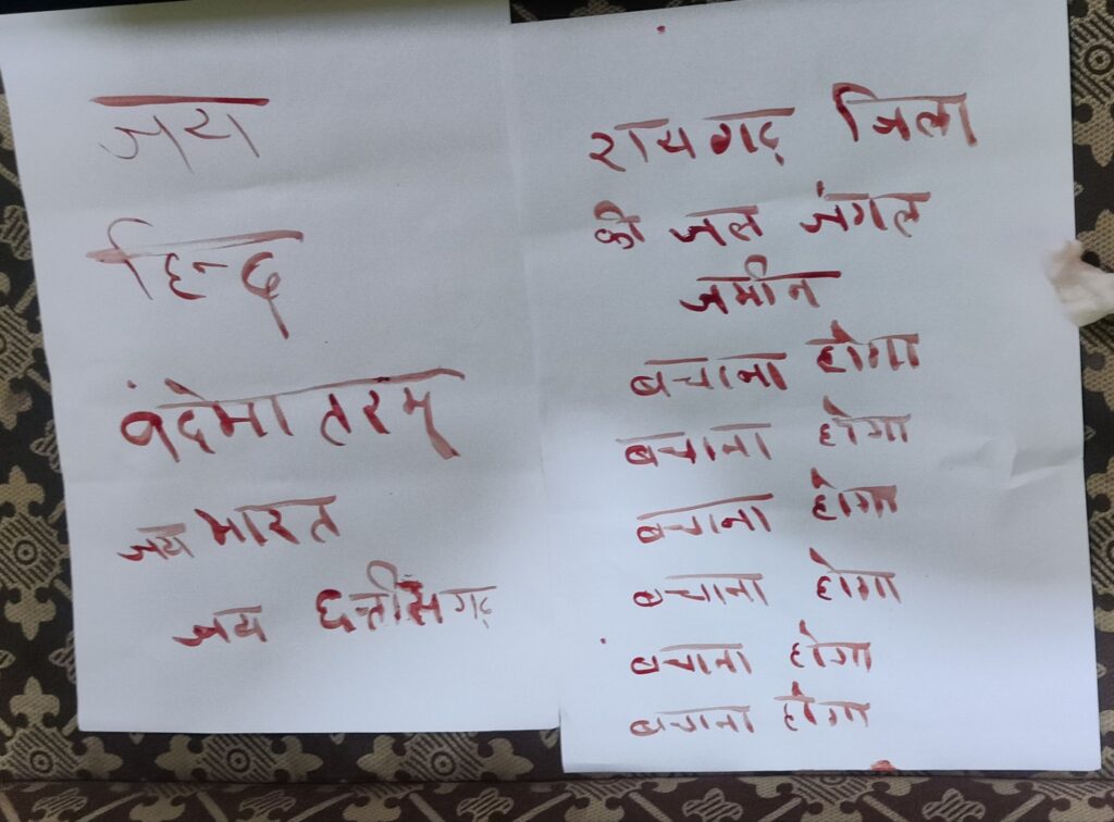 तमनार की जन सुनवाई जनता हित में निरस्त करने सामाजिक कार्यकर्ता श्याम गुप्ता ने खून से लिखा प्रधानमंत्री व मुख्यमंत्री को पत्र