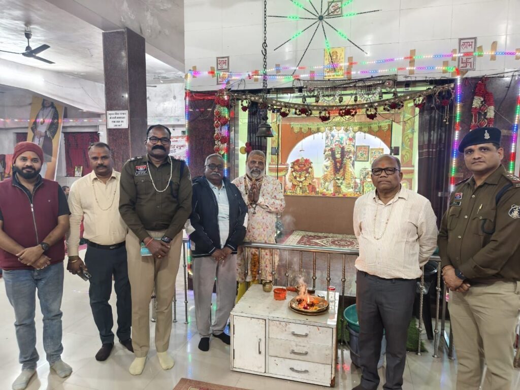 इस अवसर पर मंदिर परिसर आध्यात्मिक ऊर्जा से परिपूर्ण रहा। समाजसेवी श्री पूनमचंद अग्रवाल ने पुलिस अधीक्षक प्रफुल्ल ठाकुर जी को सम्मानित कर उनके उज्ज्वल कार्यकाल एवं सफल प्रशासन की कामना की साथ में चंद्रपुर थाना प्रभारी गगन बाजपेई जी की उपस्थिति रही