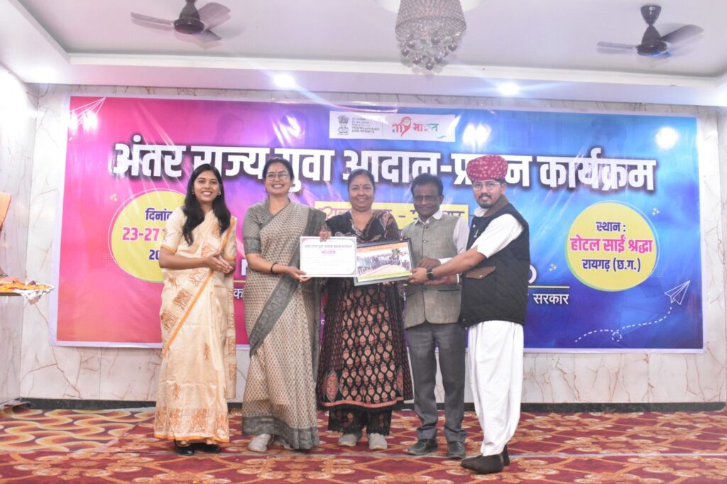 छत्तीसगढ़ / मेरा युवा भारत (माय भारत) जिला रायगढ़ छत्तीसगढ़, युवा कार्यक्रम एवं खेल मंत्रालय भारत सरकार के तत्वावधान एवं जिला युवा अधिकारी वसुंधरा साहू के संरक्षण में दिनांक 23 फरवरी से 27 फरवरी 2026 को होटल श्री साईं श्रद्धा में पांच दिवसीय अंतर राज्यीय युवा आदान-प्रदान आवासीय कार्यक्रम का आयोजन किया गया। इस कार्यक्रम के सफल संचालन एवं सहयोग कार्य हेतु रायगढ़ जिले के सक्रिय स्वयंसेवक सुशांत पटनायक, धीरज पटेल, खुशबू साहू और बिंदिया गुप्ता उपस्थित रहें।