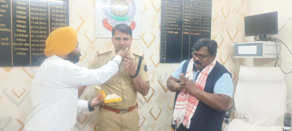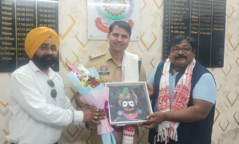 इस अवसर पर प्रेस रिपोर्टर क्लब के प्रदेश सचिव एवं नागरिक सुरक्षा सेवा संगठन के संस्थापक श्याम गुप्ता एवं जिला उपाध्यक्ष परमजीत सिंह भाटिया ने उन्हें असम शॉल, पुष्पगुच्छ एवं जगन्नाथ मंदिर पुरी के भगवान जगन्नाथ महाप्रभु की छायाप्रति भेंट कर मिठाई खिलाते हुए शुभकामनाएं दीं। उन्होंने विश्वास व्यक्त किया कि श्री मिश्रा के नेतृत्व में थाना क्षेत्र में अपराध एवं अवैध गतिविधियों पर प्रभावी अंकुश लगेगा।