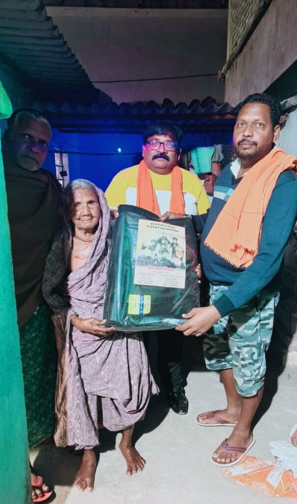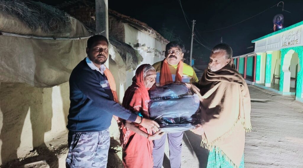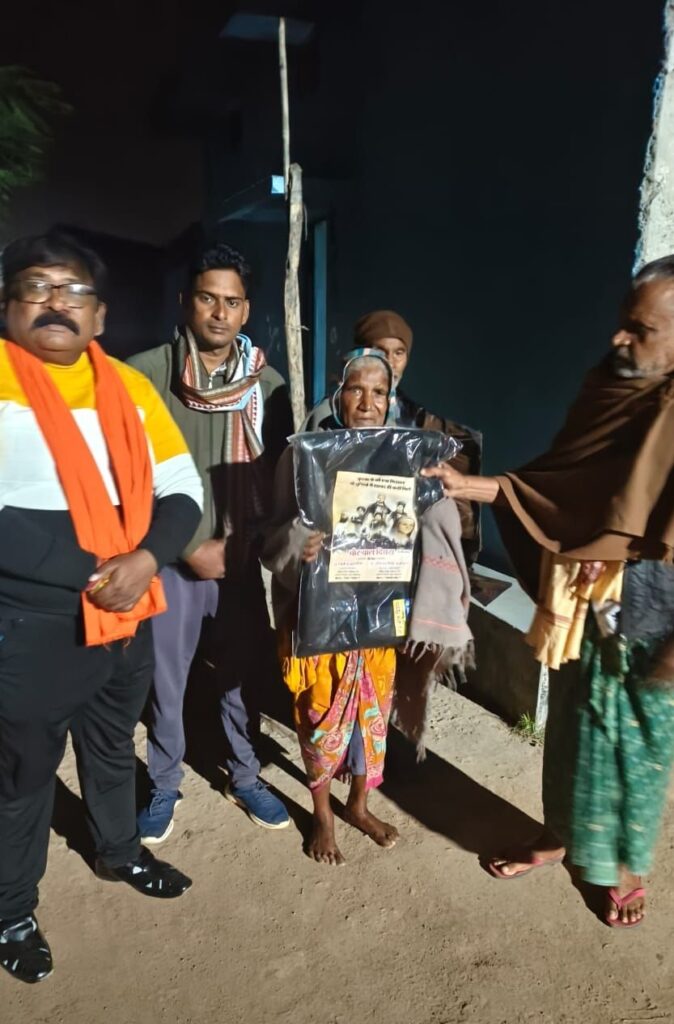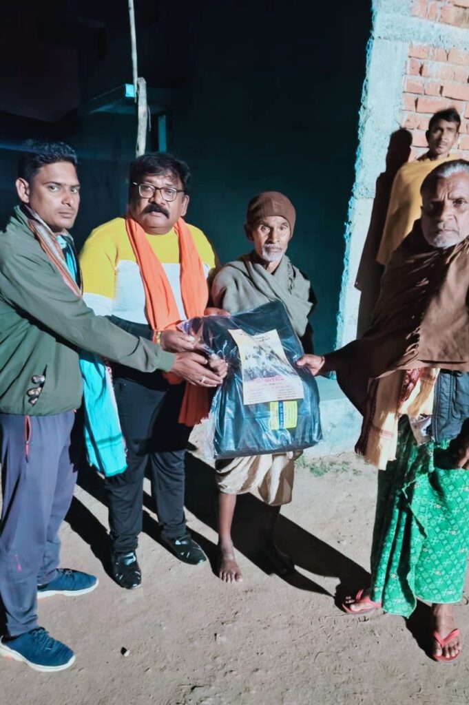 नागरिक सुरक्षा सेवा संगठन के रेंशी श्याम गुप्ता हिमांशु चौहान अग्नि पंडा जी अन्तर्यामी द्वारा वितरण रात्रि में