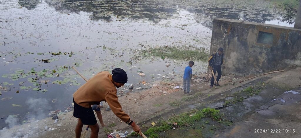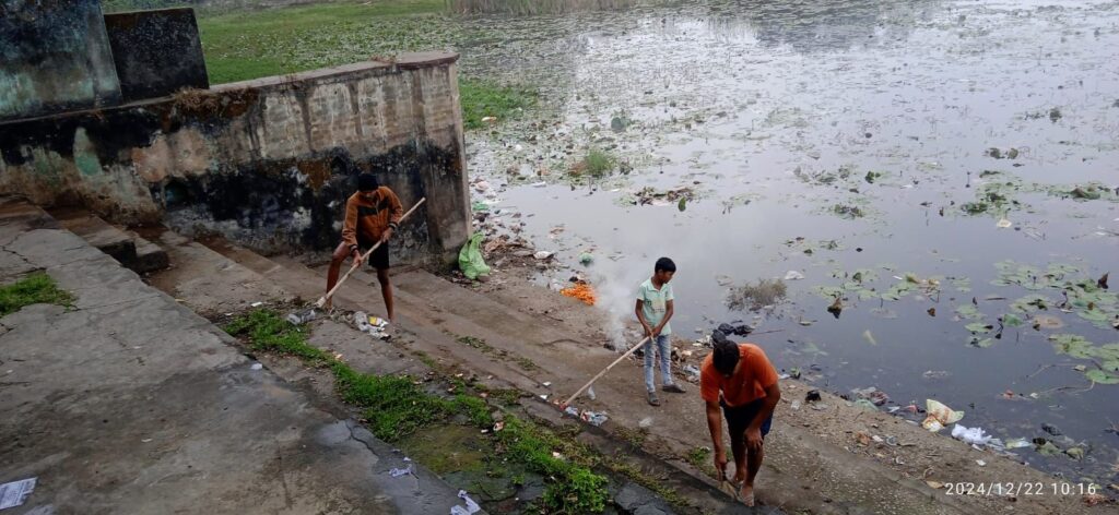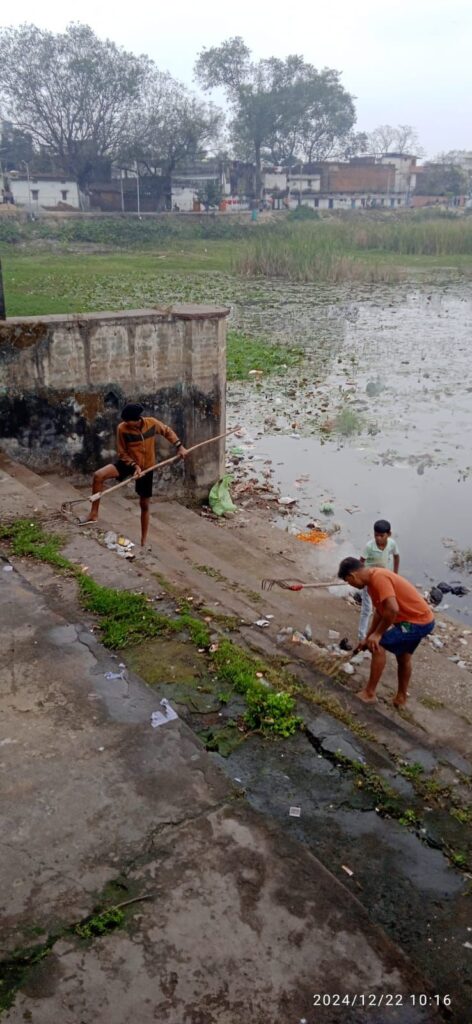 सामाजिक कार्यकर्ता श्याम गुप्ता पूर्व पार्षद प्रफुल्ल उपाध्याय के मार्गदर्शन विगत तीन महीने से स्थानीय युवा टीम लगातार तालाब की सफाई श्रमदान कर रहे हैं