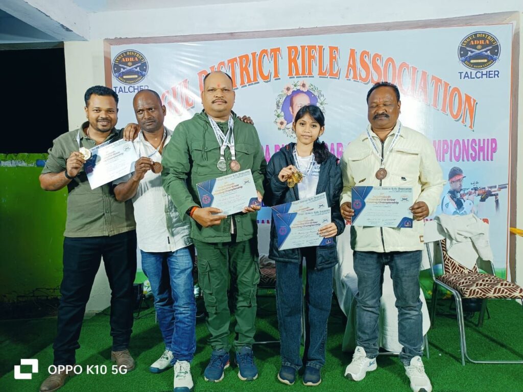 अंगुल ओडिशा में आयोजित राइफल स्पोर्ट्स शूटिंग स्पर्धा में बेहतरीन प्रदर्शन करते हुए आकाश लोहार ने स्वर्ण पदक,नवीन किशोर बाग रजत पदक व कांस्य पदक,युधिष्ठिर गिधली कांस्य पदक, गौरांगों प्रधान रजत पदक,विष्णुप्रिया प्रधान रजत पदक एवं कांस्य पदक जीतकर सुंदरगढ़ जिले में नए कीर्तिमान स्थापित कर राइफल स्पोर्ट्स शूटिंग में आने वाले समय में बड़ा प्रदर्शन के सन्देश दे दिया है अंगुल राइफल एसोसिएशन ओड़िसा के तत्वाधान होने वाले स्पर्धा में सभी पदक विजेता एवं भाग लेने वाले सभी खिलाड़ियों को बधाई देते हुए नागरिक सुरक्षा सेवा संगठन के राष्ट्रीय अध्यक्ष संस्थापक रेन्शी श्याम गुप्ता ने कहा है मेरे परम् शिष्यों नवीन बाग के साथ साथ सुंदरगढ़ के चमकता सितारा आकाश ,विष्णुप्रिया सभी खिलाड़ियों को हार्दिक शुभकामनाएं देता हूँ आने वाले समय राइफल स्पोर्ट्स में और बेहतरीन परिणाम प्रदर्शन देखने को मिलेगा मुझे इस प्रदर्शन से लगा है साथ ही नागरिक सुरक्षा सेवा संगठन के राष्ट्रीय संरक्षक बलबीर शर्मा पूर्व डिप्टी डायरेक्टर एन वाई के भारत सरकार राष्ट्रीय युवा अध्यक्ष हिमांशू चौहान सहित सभी पदाधिकारियों ने हार्दिक शुभकामनाएं दी साथ ही सुंदरगढ़ एस. पी, आई. पी. एस. आफिसर प्रत्यूष दिवाकर जी ने डीएसपी मेडम ने पदक विजेता खिलाड़ियों को सम्मानित किया है इस गरिमामय अवसर कराते सीनियर कोच लख्यापति पसायत उपस्थित रहे l